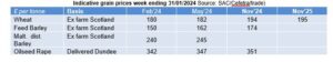 UK feed wheat futures (May-24) passed through £177.40/t on the 29th of January marking a £17/t decrease in value for this position since the first day of the New Year. Similarly, new crop futures (Nov-24) have declined £12/t in value through January.