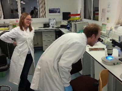 After the classroom part of the evening was concluded, the new entrants were split into two groups for the practical session. The lab session began with a look at various disease causing bacteria under the microspore and a brief chat about fluke, while viewing sample tubes containing